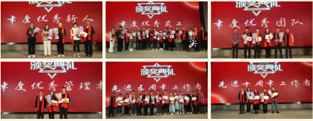 “年度优秀新人”、“年度优秀员工”、“年度优秀团队”,“年度优秀管理者”、“年度先进工作者”,一张张证书,一块块奖牌,铭刻着过去一年的拼搏征程。此刻,他们站在聚光灯下,成为全体同仁奋进路上的榜样。