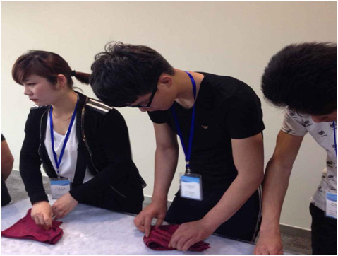 费老师和丁老师在酒店现场向学员讲解课程内容及操作要求: