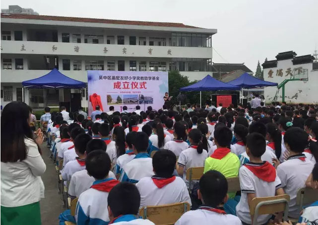 6月8日,吴中高新区“蠡墅友好小学奖教助学”专项慈善基金成立仪式活动在吴中区蠡墅友好小学隆重举行。 基金初募资金20余万元。该项基金是由吴中高新区商会设立的奖教助学专项基金,主要用于吴中区蠡墅友好小学的优秀教师奖励及师生的扶贫帮困事业。